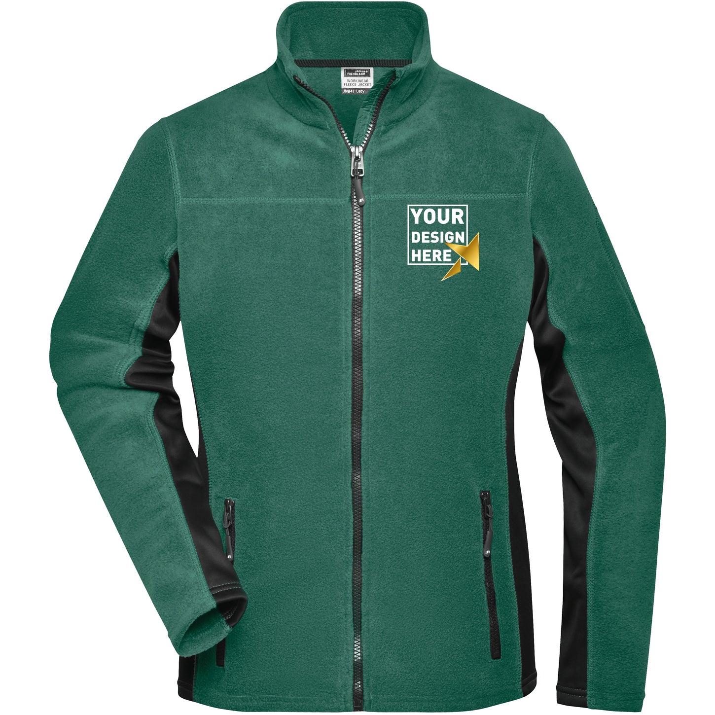 Veste de travail en microfibre polaire vert foncé/noir